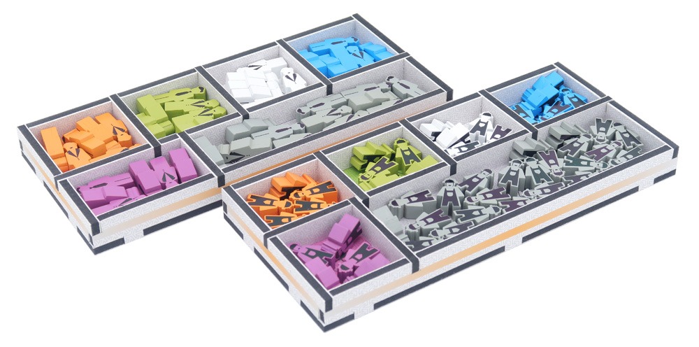 The full colour print really brings the trays to life, tying them in with the theme of the game and making it easier to see which components go where.